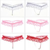 (情趣内衣)激情蕾丝开裆T裤女性低腰透明内裤蕾丝按摩开档性感丁字裤(粉色)